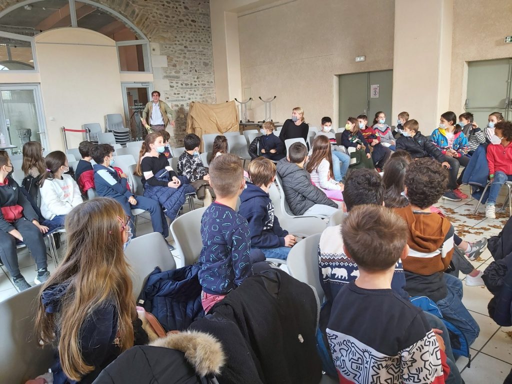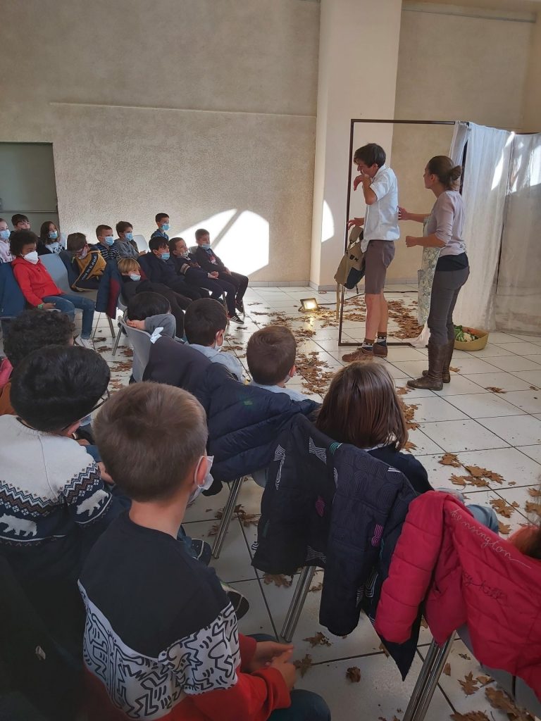 Fin novembre, les classes de CP, CE1, CE2 ET CM1 ont eu la chance de pouvoir assister à une pièce de théâtre intitulée « L’ogrelet ». Les comédiens nous ont entrainés dans une histoire palpitante, mêlant diverses émotions: la joie, la peur, le doute…Petits et grands ont pu, à la fin du spectacle, poser aux deux comédiens, toutes les questions restées en suspens concernant l’histoire et la mise en scène…Et quelques jours auparavant, ils avaient eu le plaisir de recevoir dans leur classe la comédienne, qui leur avait donné quelques précisions sur la pièce proposée. Merci à la Mairie de Morlaàs pour nous avoir permis d’assister à cette représentation!