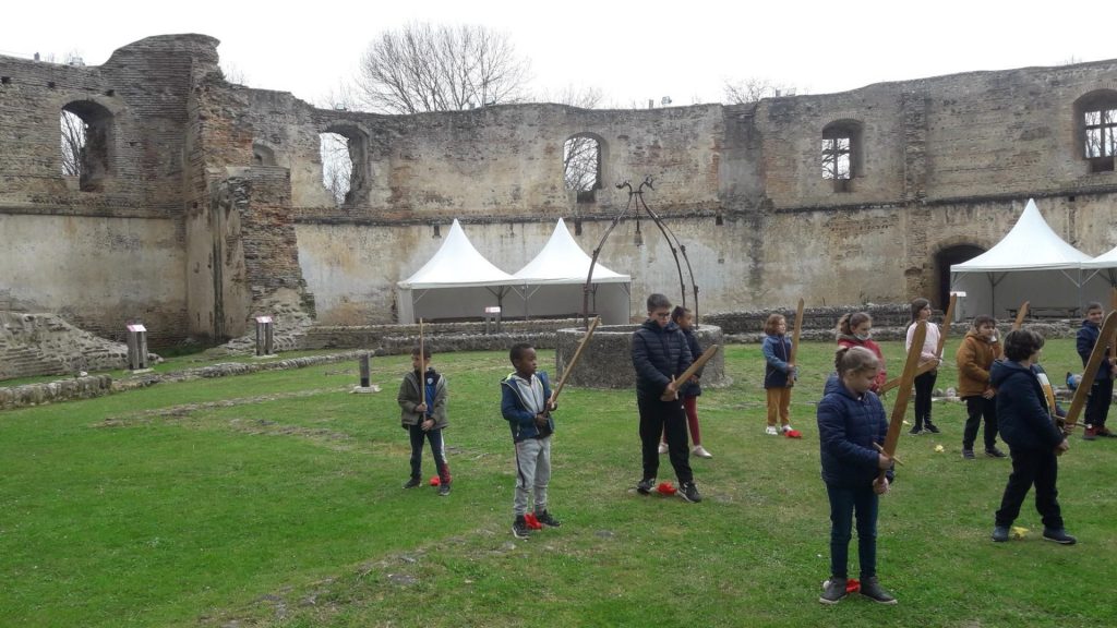 En petit groupe, ils ont vécu au temps des chevaliers du XIVème siècle en s’entrainant au maniement de l’épée et en réalisant une bourse médiévale en cuir qu’ils ont rapportée en souvenir.