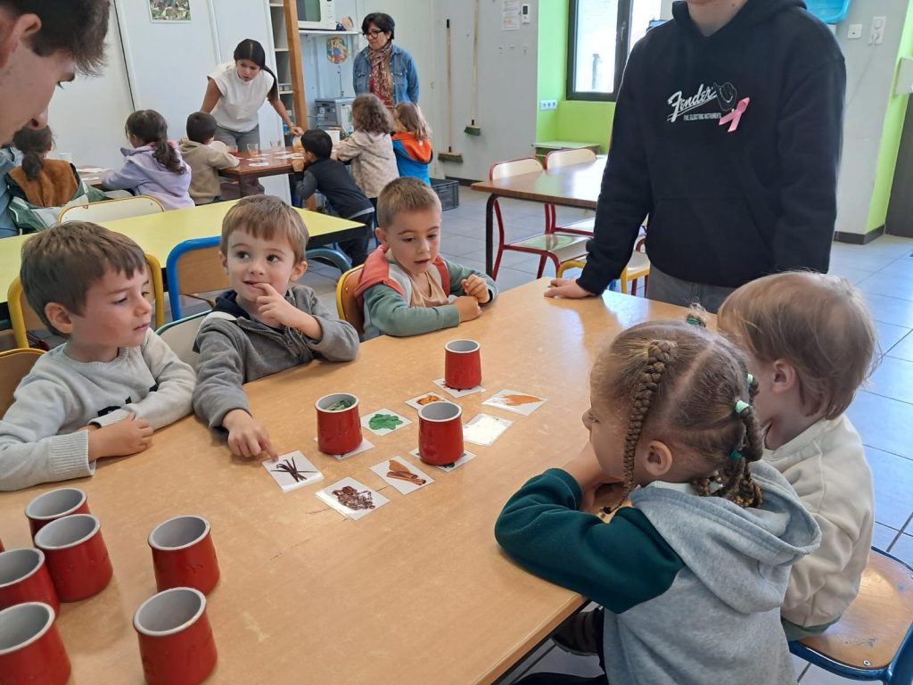 À l’occasion de la Semaine du Goût, les élèves du lycée Haute-Vue de Morlaàs ont animé des ateliers auprès des enfants de Moyenne et Grande Section, encadrés par leur professeur, Mme Cécilia Pouchou. Les 15 lycéens de terminale de la filière Animation Enfance et Personnes Agées (AEPA) se destinant aux « Métiers de l’animation » avaient préparé avec soin plusieurs ateliers autour du goût.