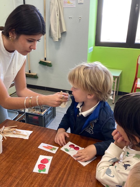 Au programme de la matinée du 14 octobre pour les enfants : découverte des goûts sucrés, salés, acides et amers après dégustation de jus de pamplemousse, pêche, citron et tomate, reconnaissance olfactive des herbes aromatiques, arômes, épices, jeux de reconnaissance et de tri de légumes, de fruits grâce au « Qui est-ce ? », puzzles et pêche à la ligne d’images de fruits et légumes.